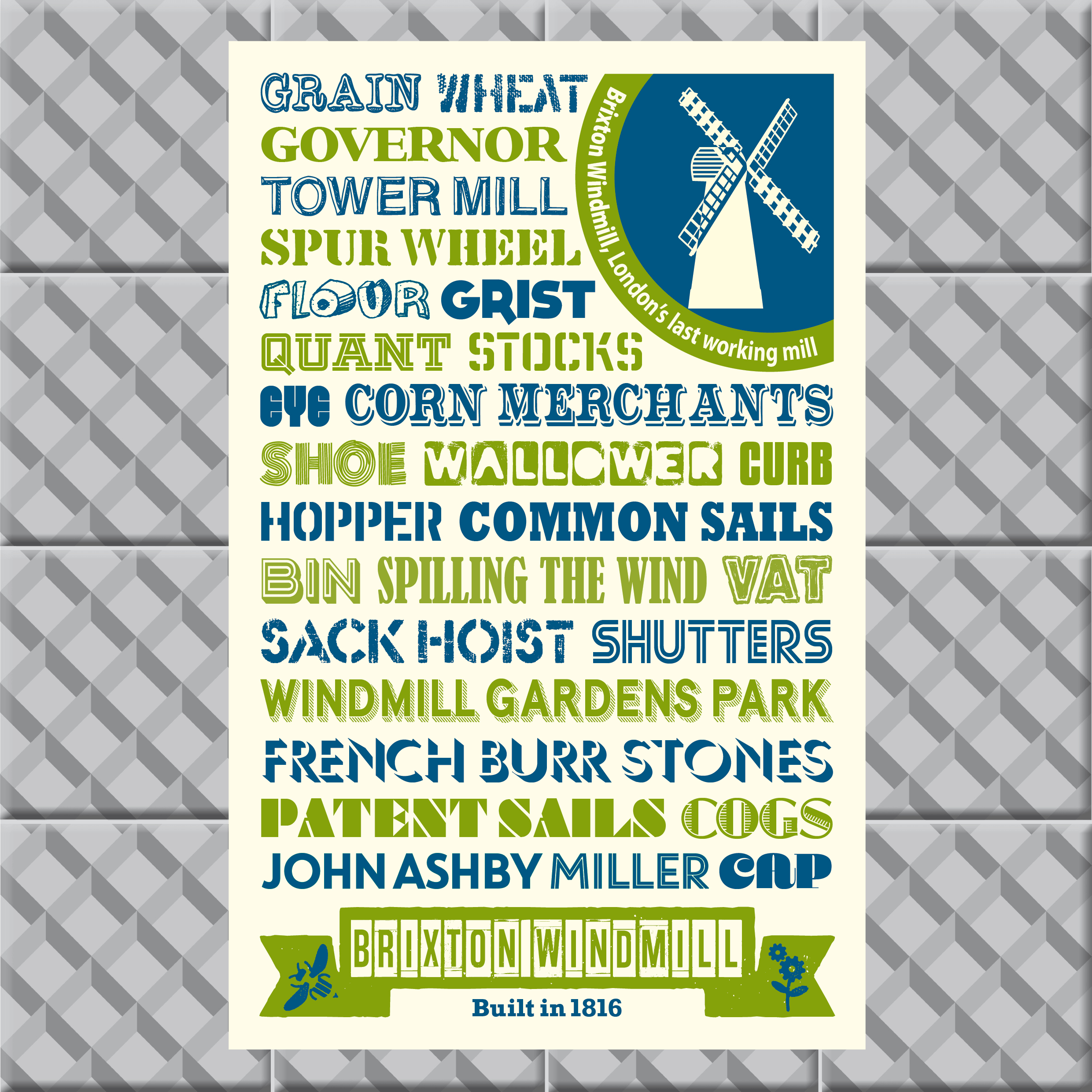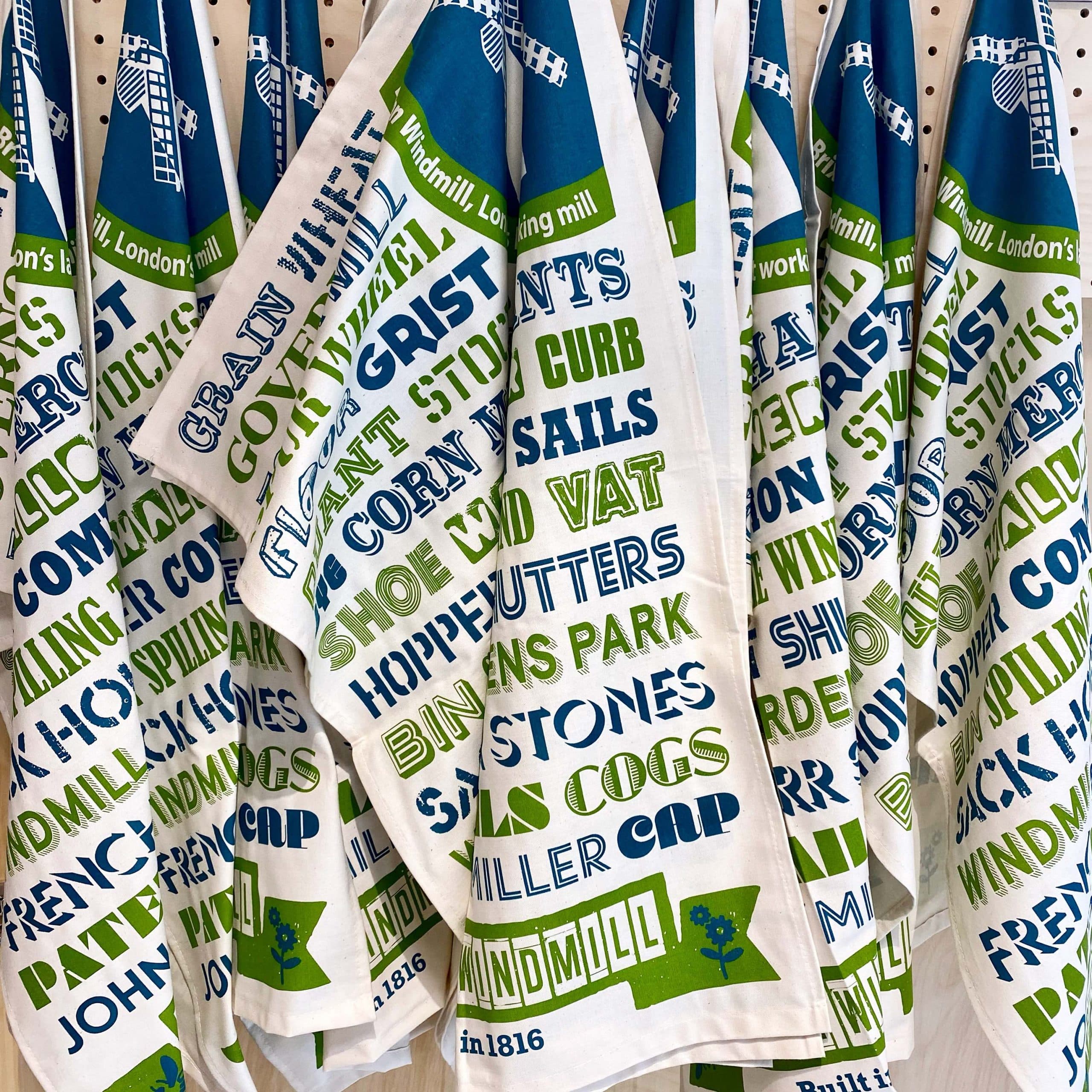 This eco-friendly cotton tea towel features an on-trend typographical print, making it a stylish gift for windmill enthusiasts or those from South London.